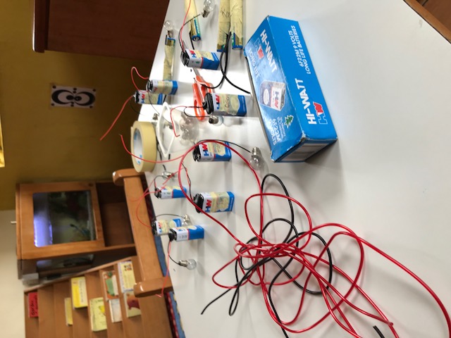 This project uses a battery, a bulb and wires to light a bulb.