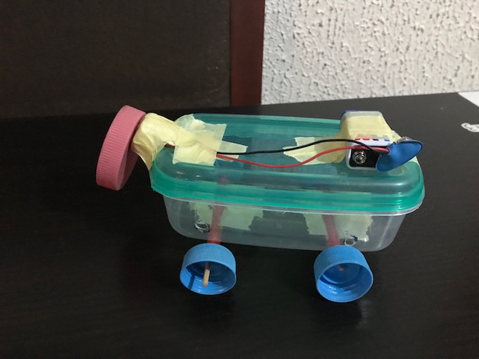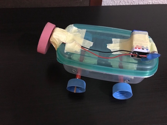 This project adopts similar concept as with the wiggling robot. The car moves.